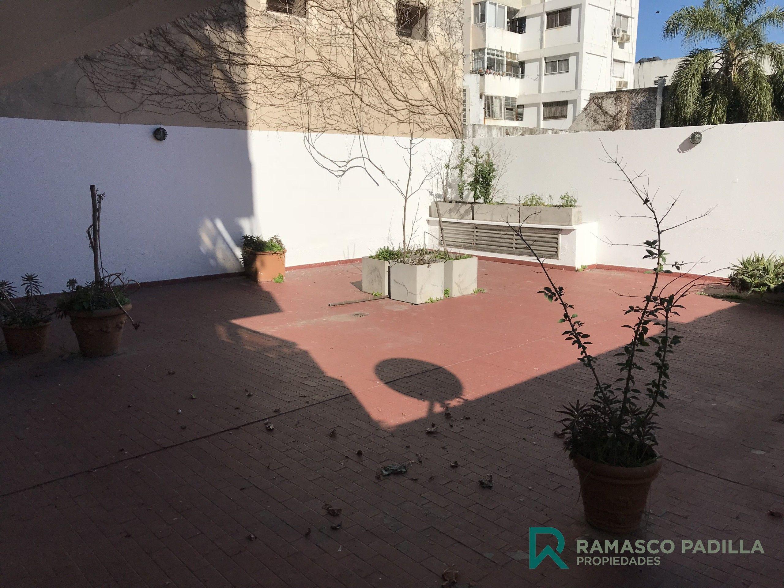 Departamento contra-frente en primer piso con amplio patio. 3 dormitorios con placares, dos baños completos, amplio living comedor, cocina separada y lavadero independiente. Cochera. El departamento cuenta con dos patios, uno interno de 3 x 3.5 y otro externo de 10 x 12.