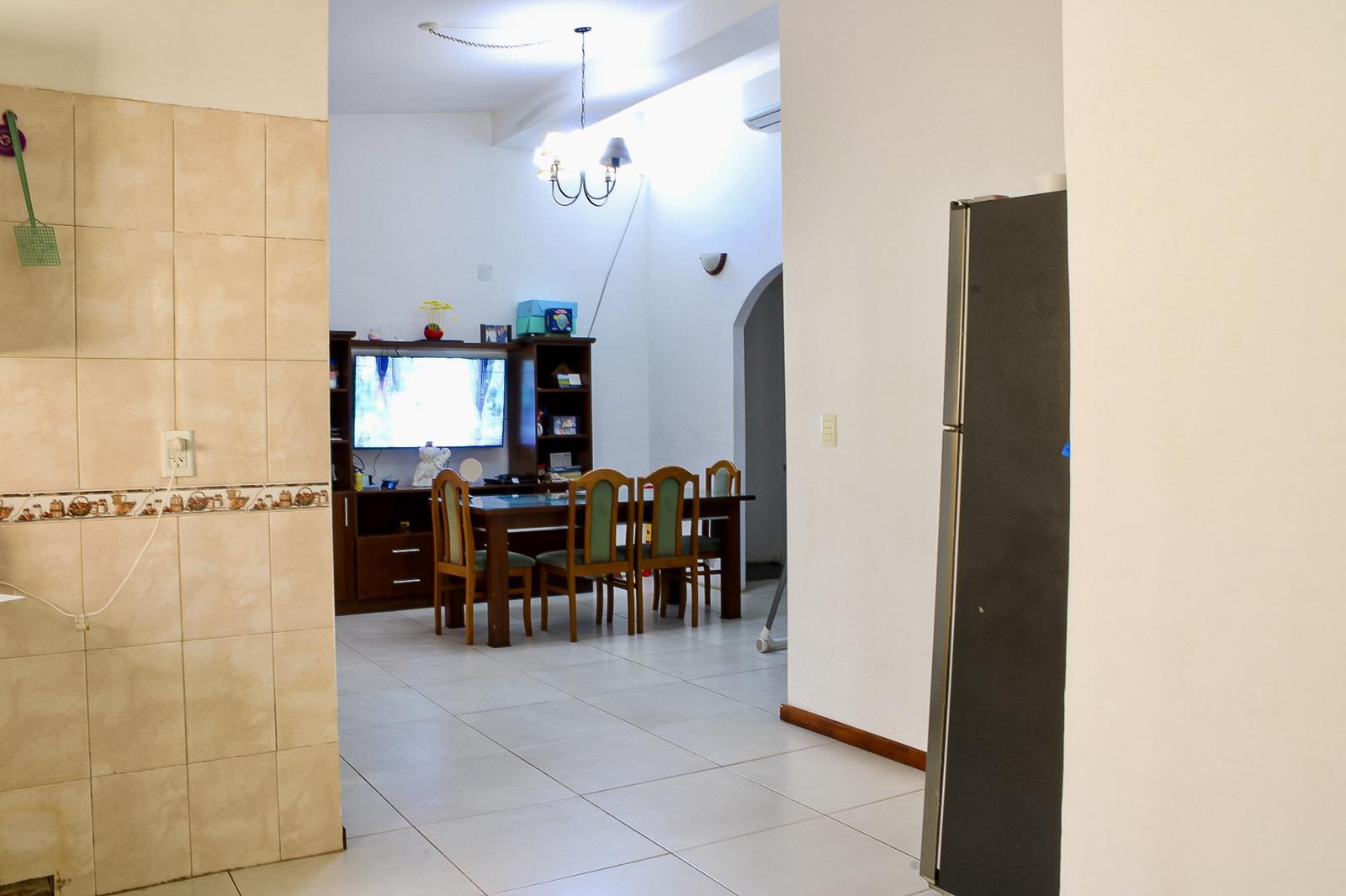 Despcripcion de la propiedad: Al ingresar, se encuentra un espacio de servidumbre y un jardín de ingreso, con acceso pasante para varios vehículos y garage cubierto. Living de ingreso y cocina completamente equipada. Estar comedor. Baño completo. 3 dormitorios de amplias dimensiones. Garage cubierto. En la parte del jardin, espacio verde, quincho, lavadero y 2do baño.