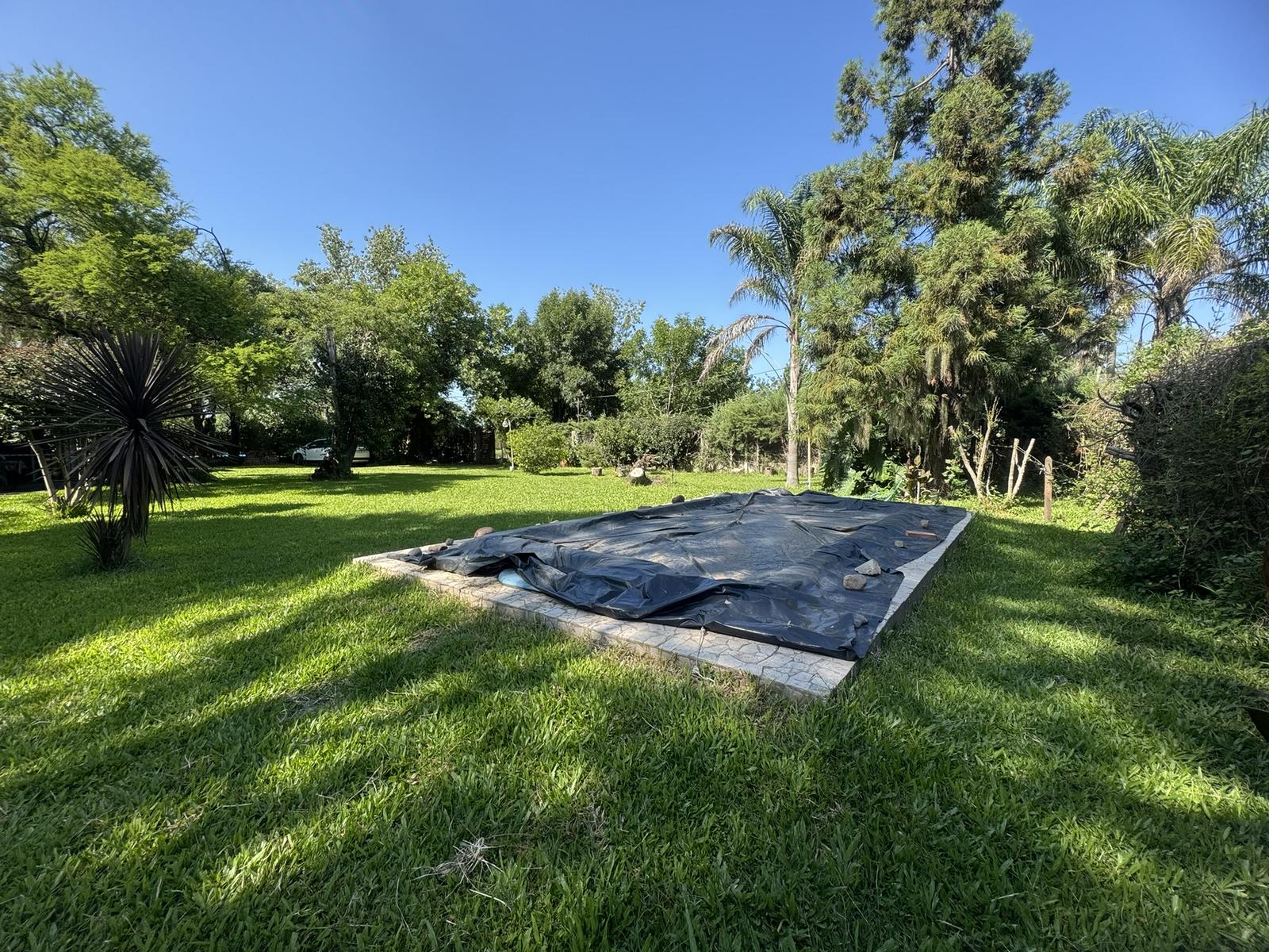 La propiedad cuenta con tres habitaciones bien definidas. Cocina y comedor diario independiente. Baño completo con ducha. Uno de los dormitorios, hoy cumple funcion de Living.Cuenta con cochera semicubierta para 1 vehiculo.Gran Jardin forestado y con mucho verde.Parrilla en exterior. Tambien cuenta con parrillero en sector de cocina.Agua potable – Perforacion de 30 mts de profundidad. Se hicieron los analisis correspondientes.Gas envasado.La casa cuenta con pozo ciego. Cuenta con pileta – Bomba de filtrado portatil.Galeria semicubierta.Superficie de lote: 350 m2.Superficie cubierta: 147 m2.Posesion inmediata.Forma de pago: Efectivo.