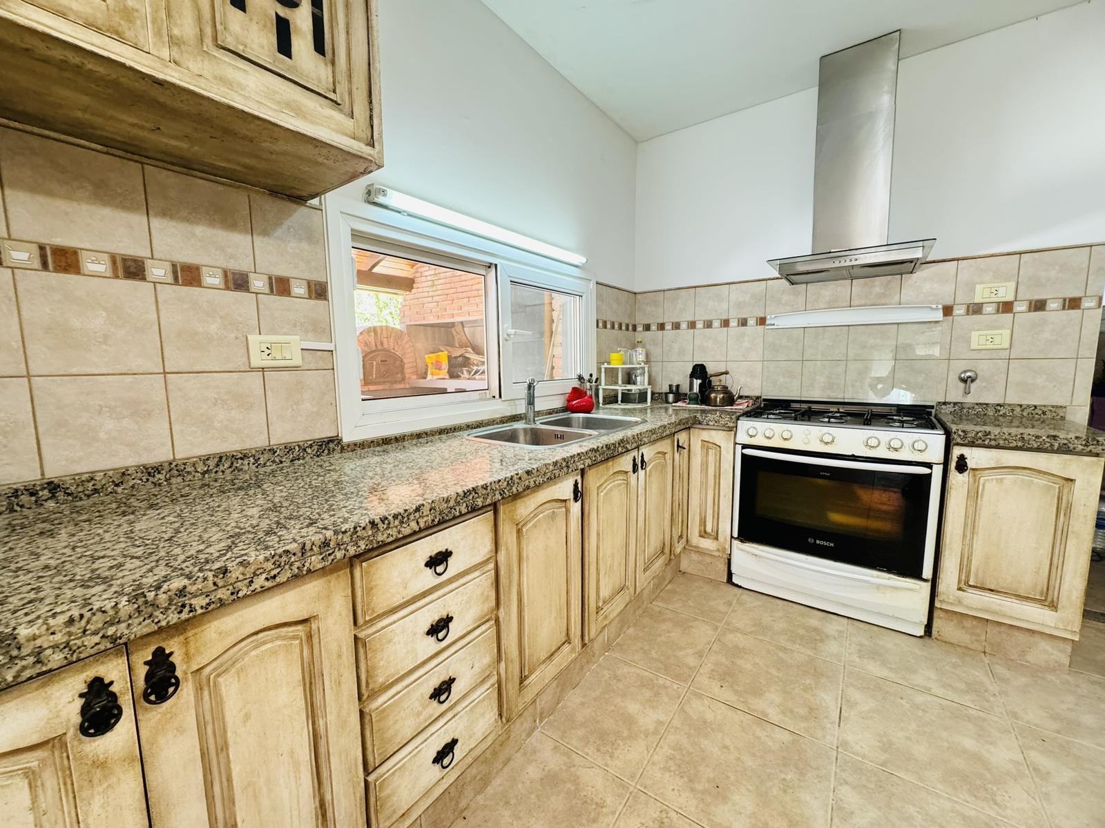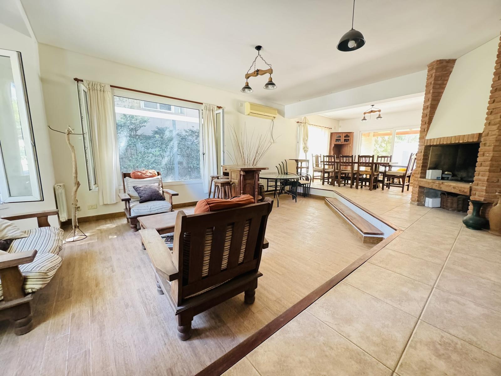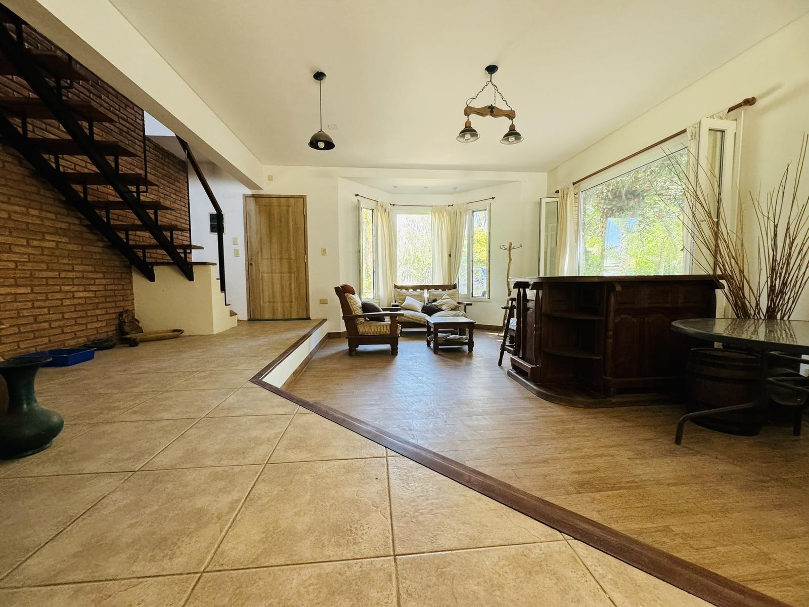 – Planta baja: Ingreso principal a gran living comedor con pisos de porcelanato, con desnivel y detalles en madera. Hogar a leña. Cocina integrada, completamente equipada con alacenas y bajomesada, bacha de acero inoxidable con canilla monocomando, cocina a gas, con extractor. Espacio tecnico para heladera y freezeer. Lavadero sectorizado. Baño completo. Habitacion tipo dormitorio u oficina.