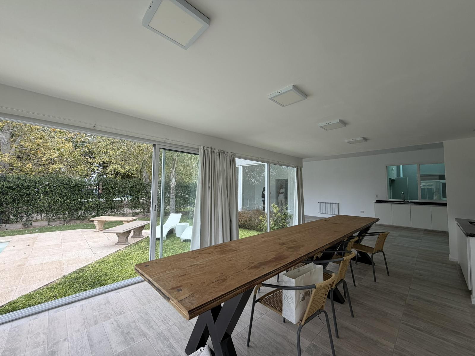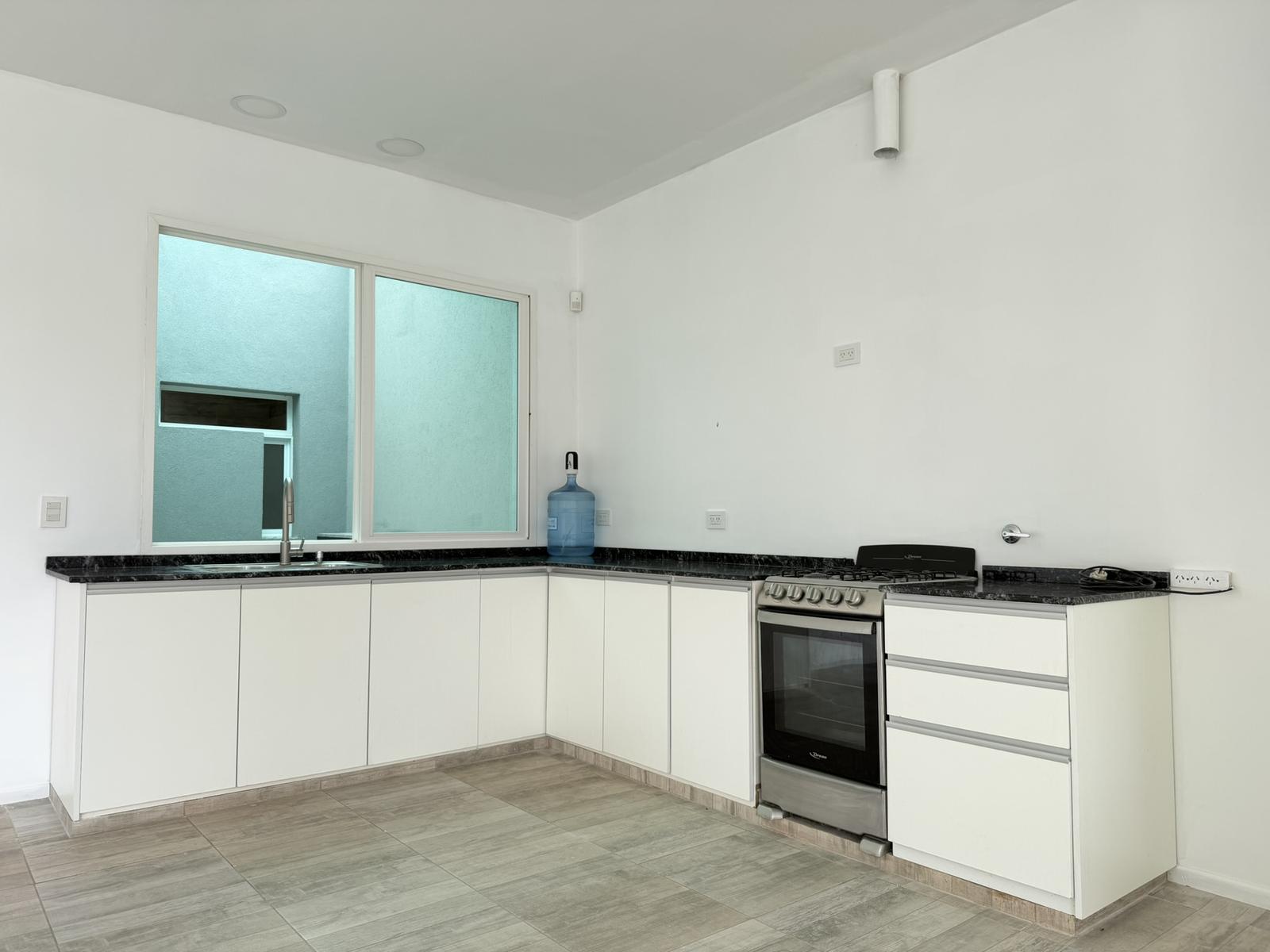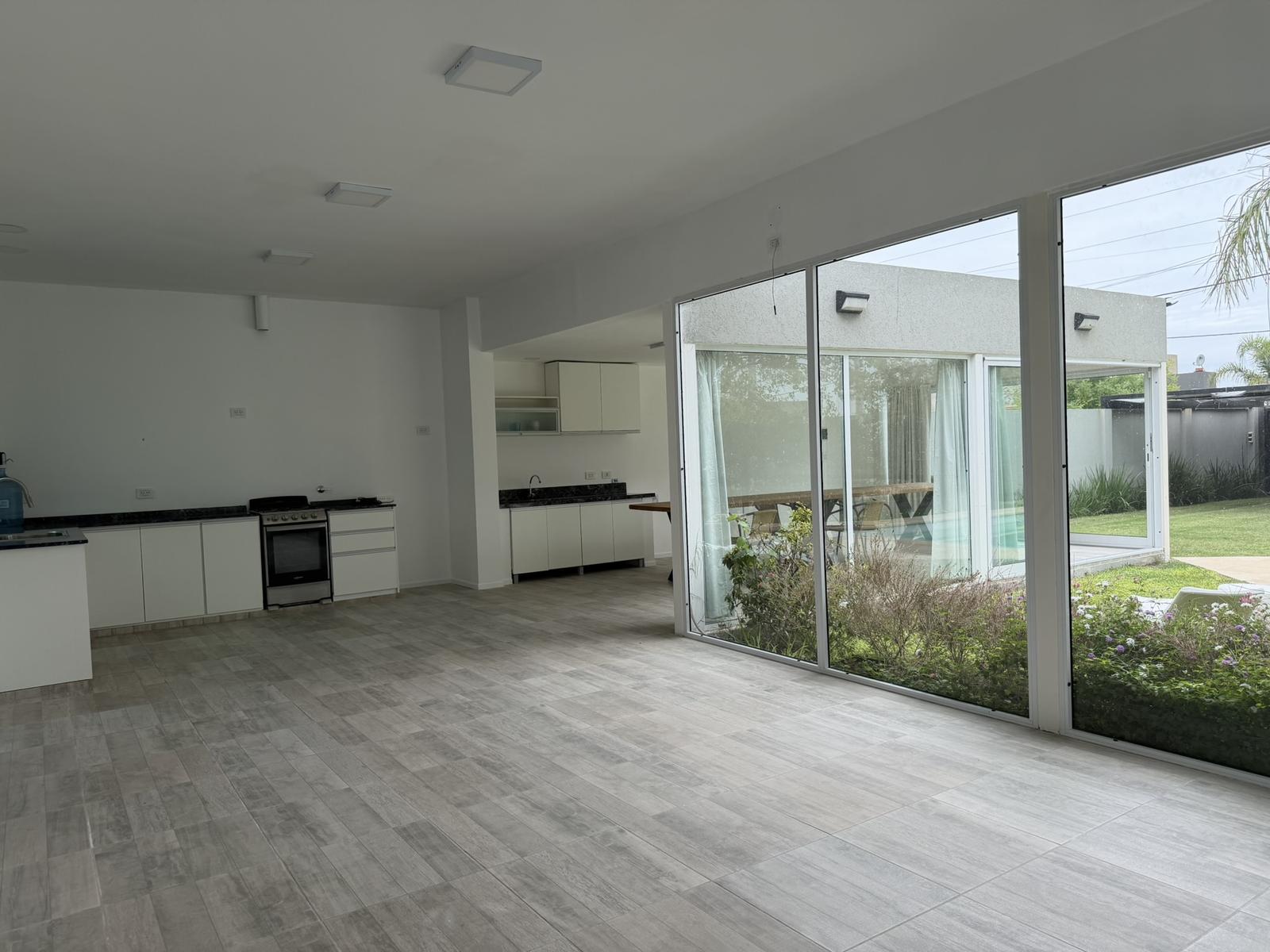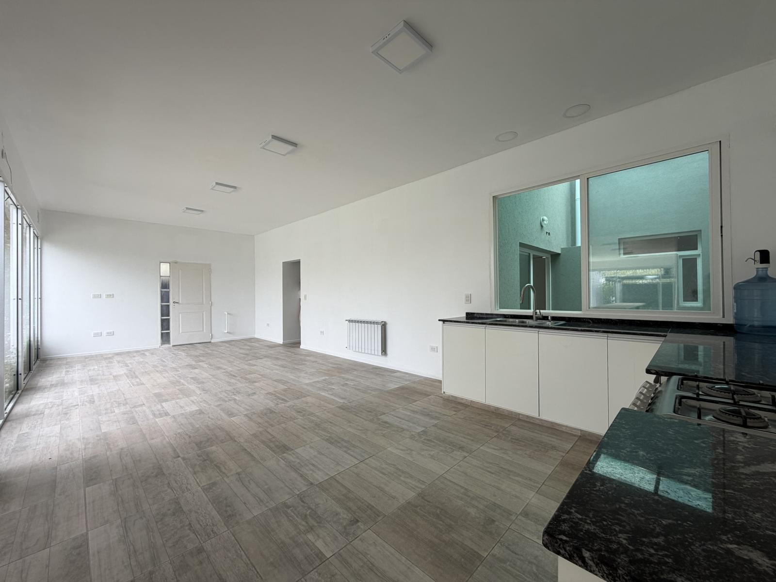 Descripción de la unidad: Ingresamos a la casa por living comedor, cocina integrada completamente equipada con bajo mesada y conexión para lavarropas. El ambiente continua hacia un espacio tipo quincho, hoy integrado, pero que ofrece la posibilidad de independizarse, creando un ambiente separado.