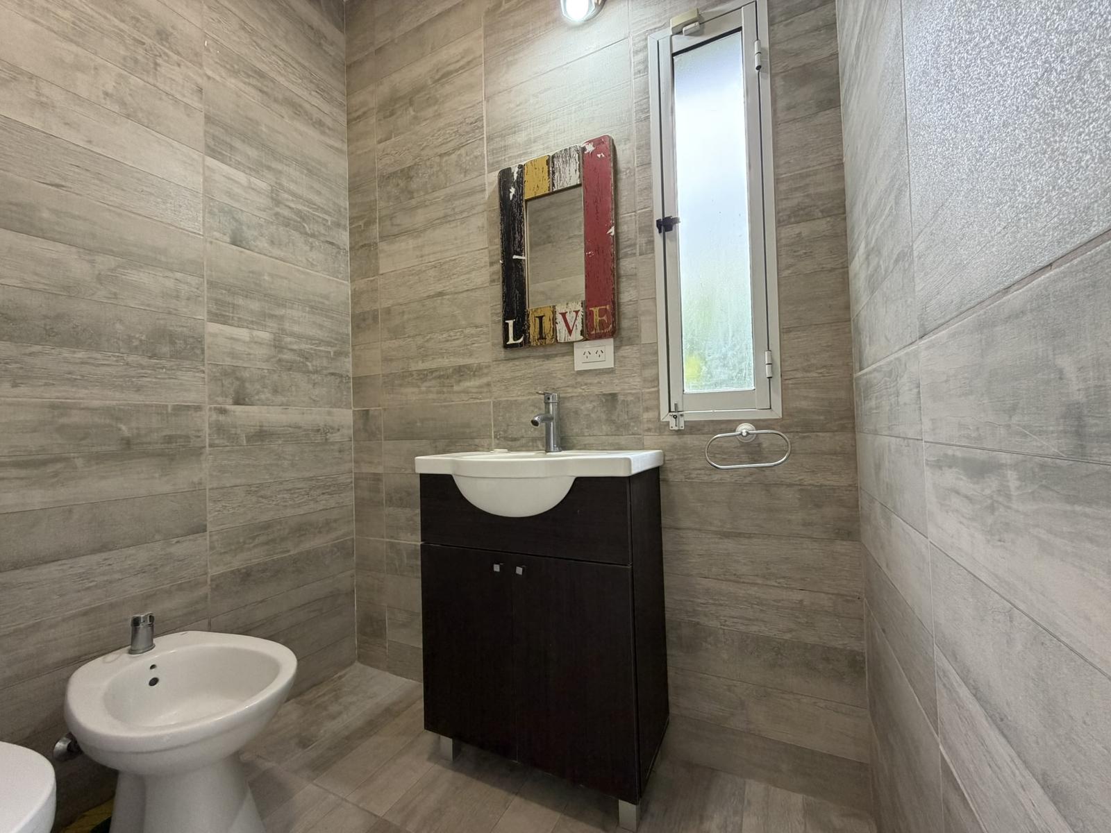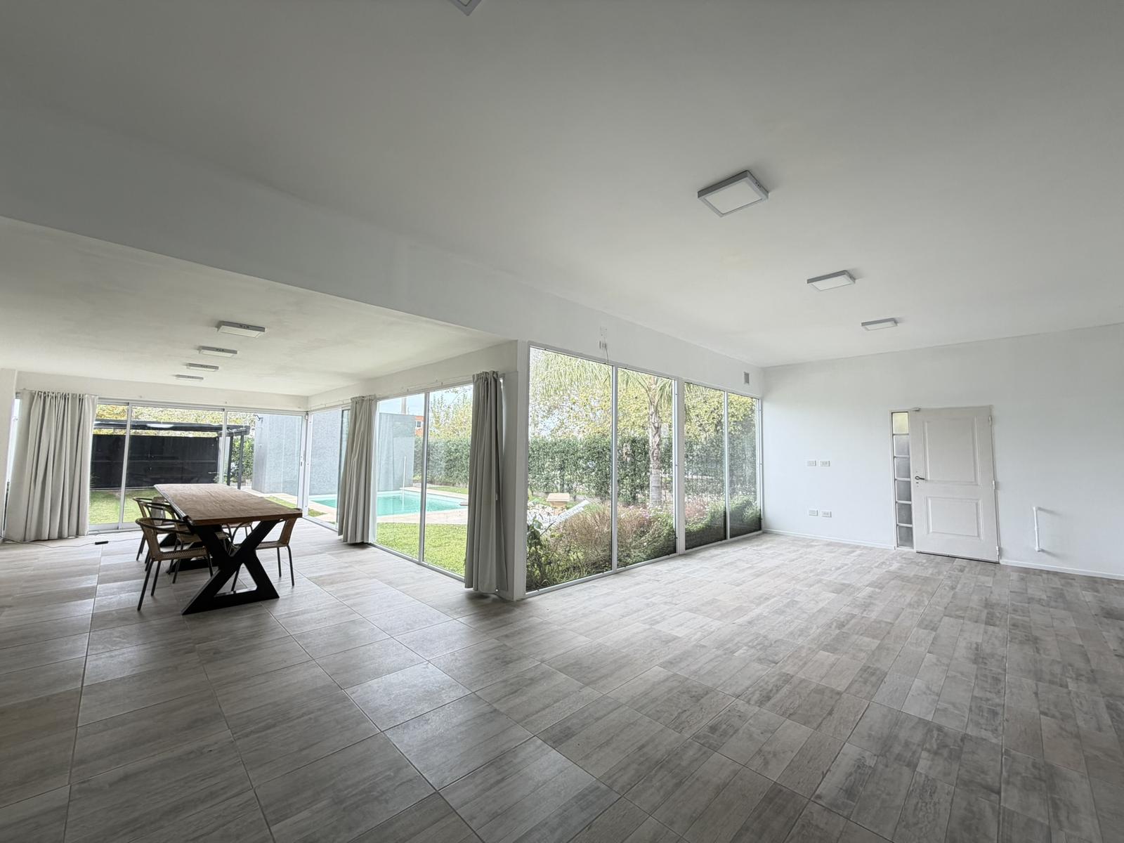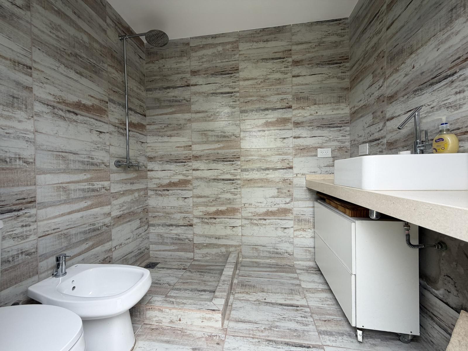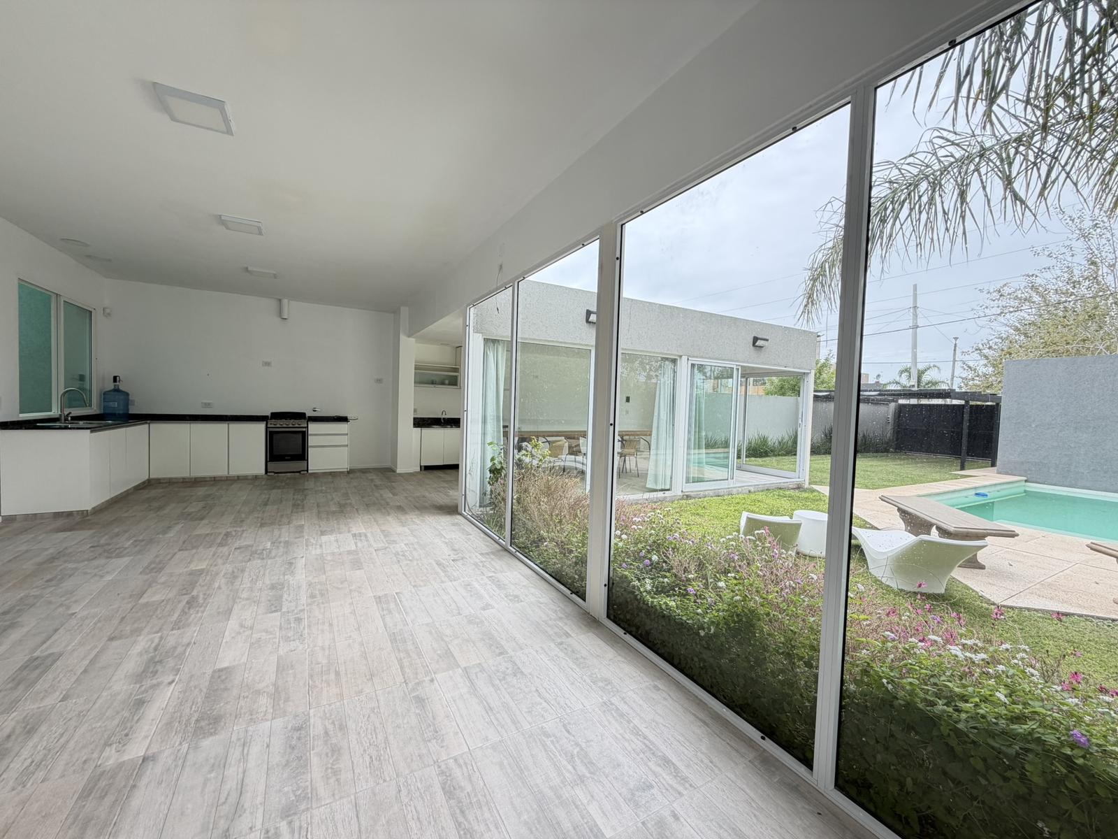 Descripción de la unidad: Ingresamos a la casa por living comedor, cocina integrada completamente equipada con bajo mesada y conexión para lavarropas. El ambiente continua hacia un espacio tipo quincho, hoy integrado, pero que ofrece la posibilidad de independizarse, creando un ambiente separado.