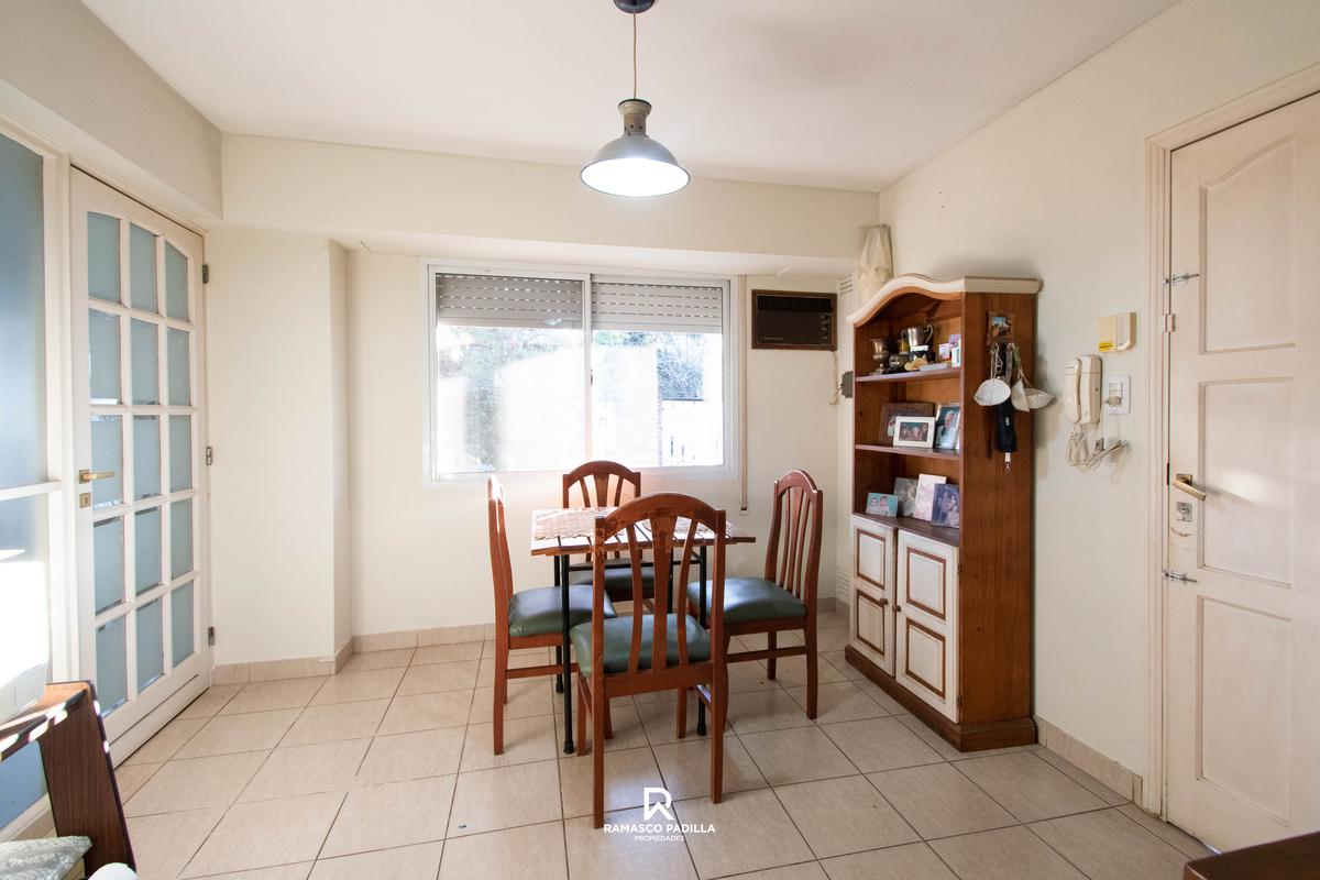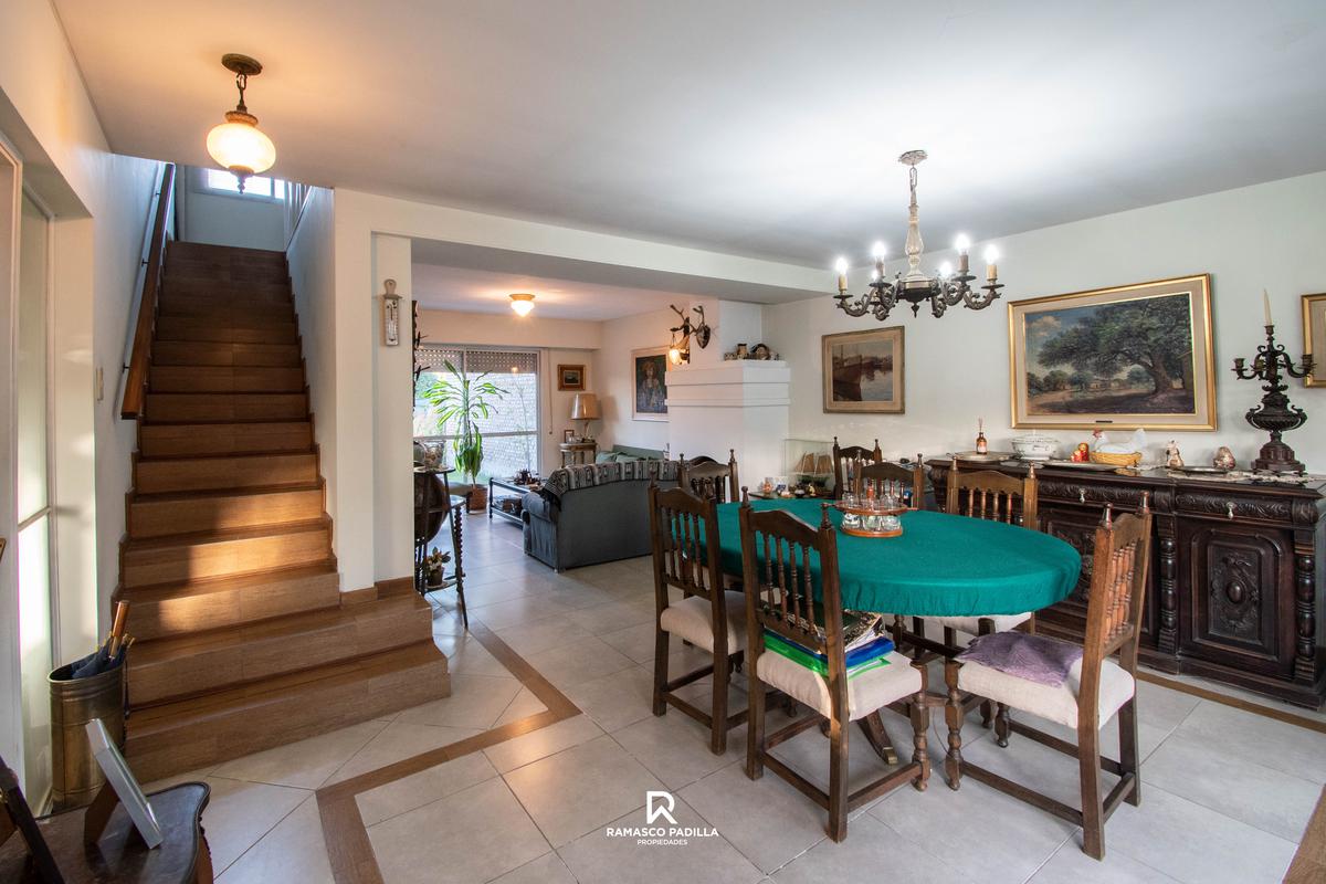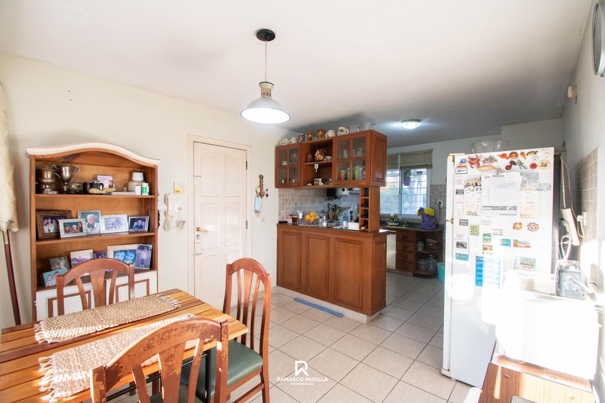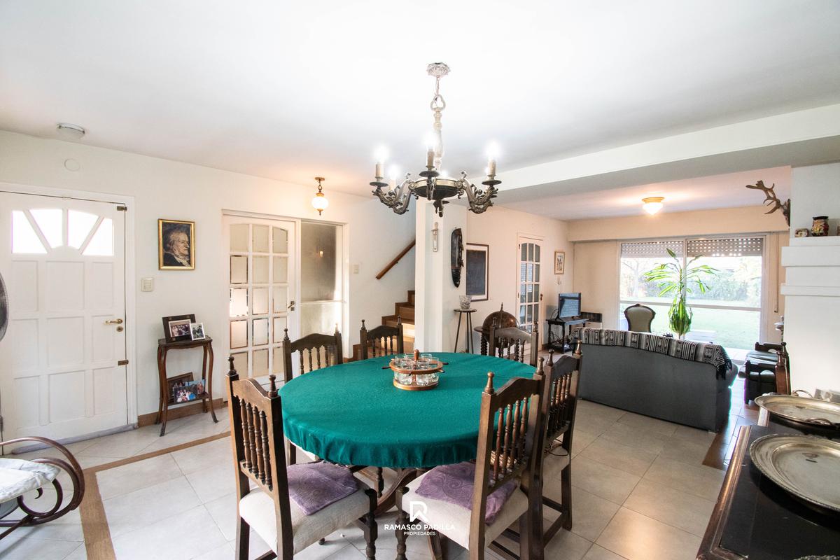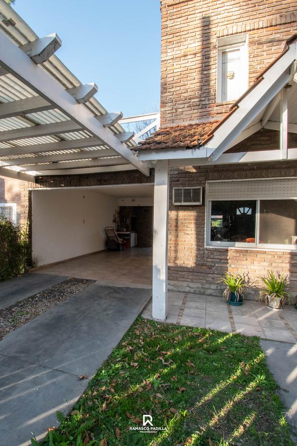 Ingreso a la propiedad por el frente, teniendo una cochera pasante techada para dos vehículos. La cochera cuenta con una galería pasante con parrilla y un espacio de guardado. También cuenta con un amplio Jardín con espacio para hacer una pileta. Ingresando a la casa por el frente tenemos un comedor diario cómodo y un living comedor con hogar. En la misma planta está la cocina semi integrada a un comedor diario, con lavadero independiente y un baño completo.