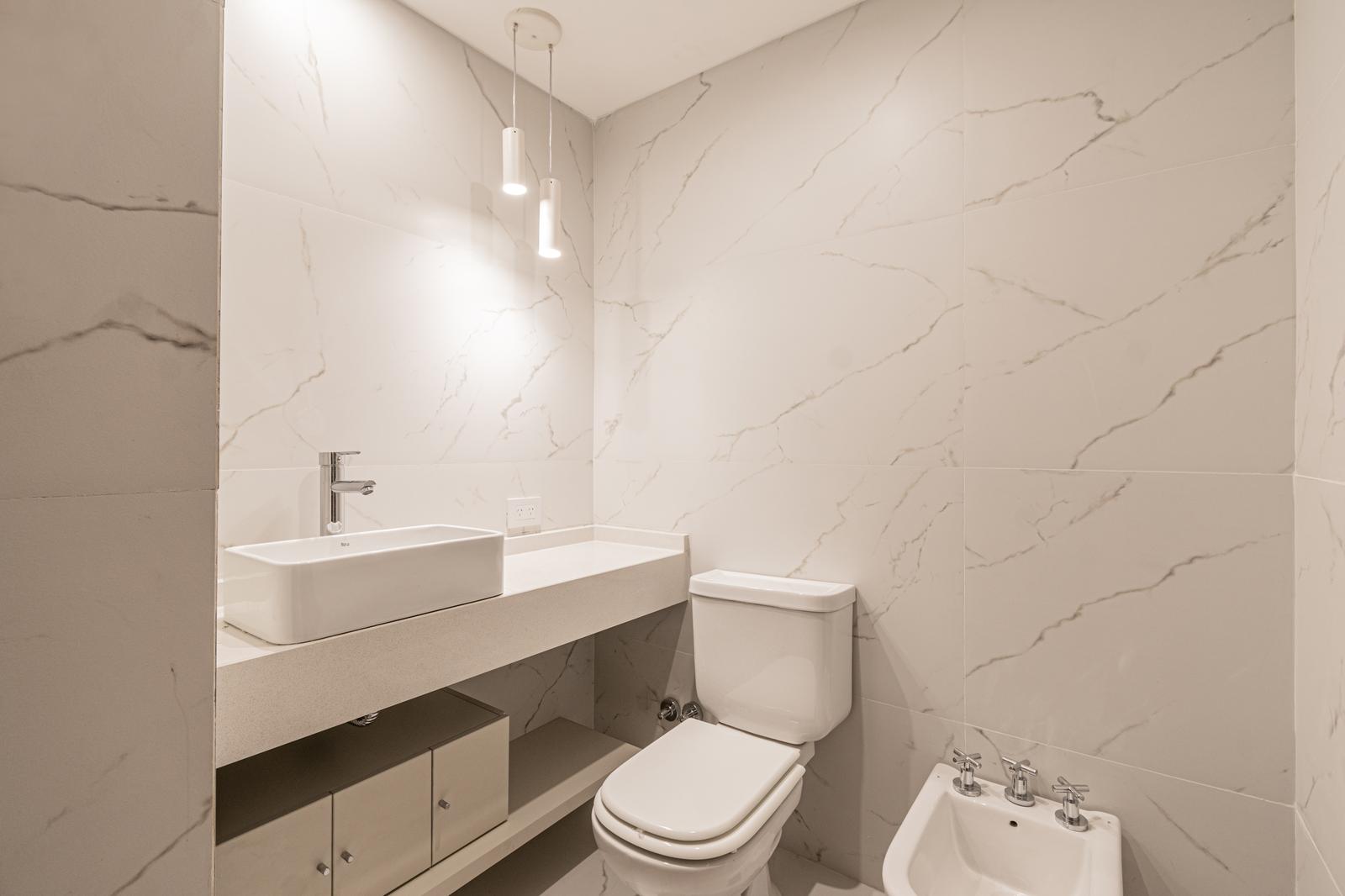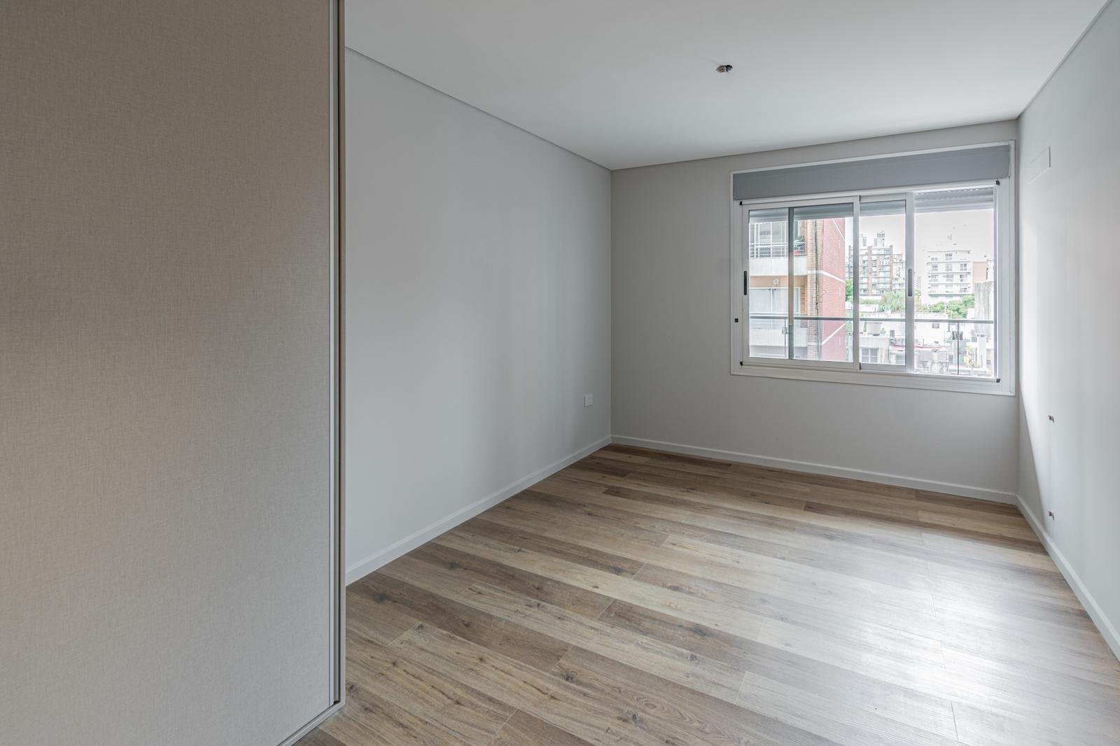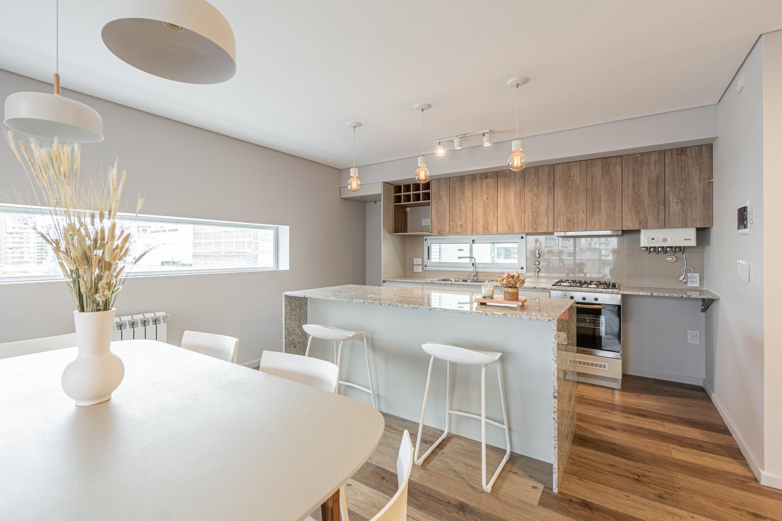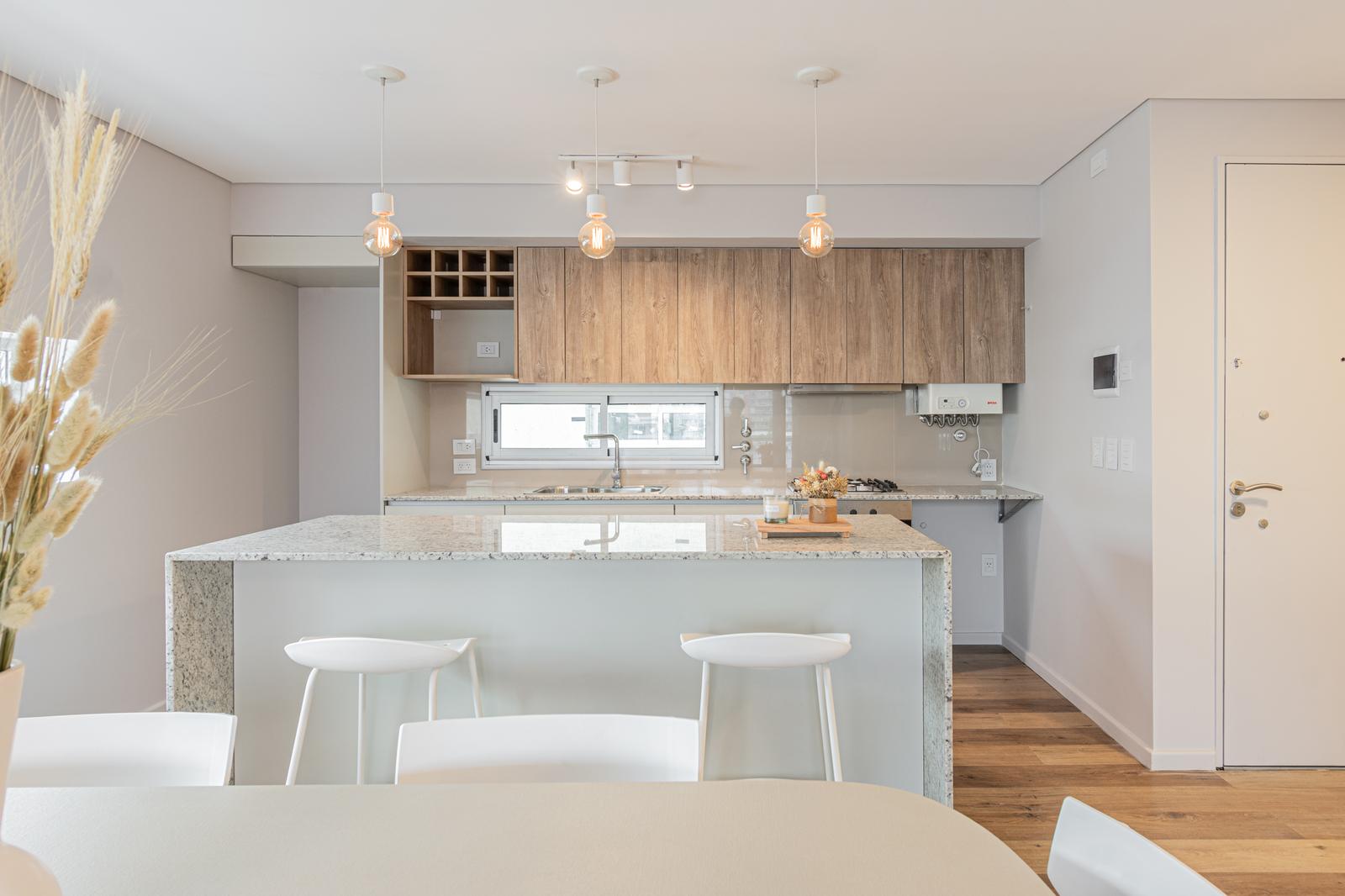 Descripción de la unidad: Departamento de 3 dormitorios con patio, ingreso por living comedor con cocina intergada + barra desayunadora. Muebles de cocina completos: bajo mesada, alacenas, porta microondas, bodeguero; mesada en granito gris, pileta de acero inoxidable y grifería monocomando. El cuarto principal cuenta con baño en suite y todos las habitaciones tienen placard empotrado completo con guias de aluminio. Ademas, cuenta con otro baño completo. Amplio patio con parrillero. Unidad al contrafrente con disposición Norte.