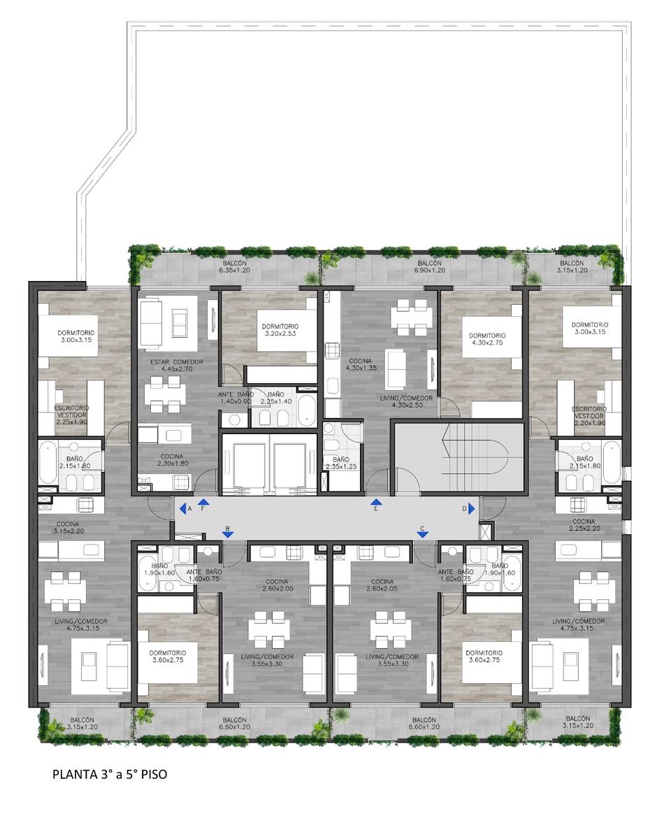 En primer piso oficinas con ingreso independiente. Desde el piso 2 al 10 unidades de vivienda, con tipologia de 1, 2 y 3 dormitorios.Terraza con amenities: Piscina – SUM – Quincho – Parrillero. Tres niveles de cochera.