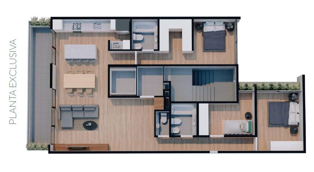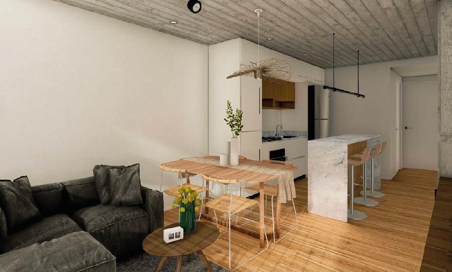 . Terminaciones de excelente calidad. . Uso intensivo de hormigón visto, en su mayoría de tabla y laminado, aplicado tanto en fachadas como en interiores.. Paredes y cielorrasos en yeso monocapa con molduras perimetrales. . Puertas de ingreso con diseño exclusivo y cerraduras de seguridad certificadas. . Porcelanatos de primera línea en todos los espacios. . Amoblamientos Johnson de categoría premium. . Aberturas línea ALUAR A30 con DVH laminado, optimizando seguridad y confort térmico. . Griferías FV con cierres cerámicos mono comando en baños y cocinas. . Excelente balance térmico en todas las unidades, con preinstalación para aire acondicionado, caldera dualindividual y preinstalaciones para radiadores. ?Certificación en aspectos higrotérmicos y eficiencia energética, asegurando un estándar constructivo superior.