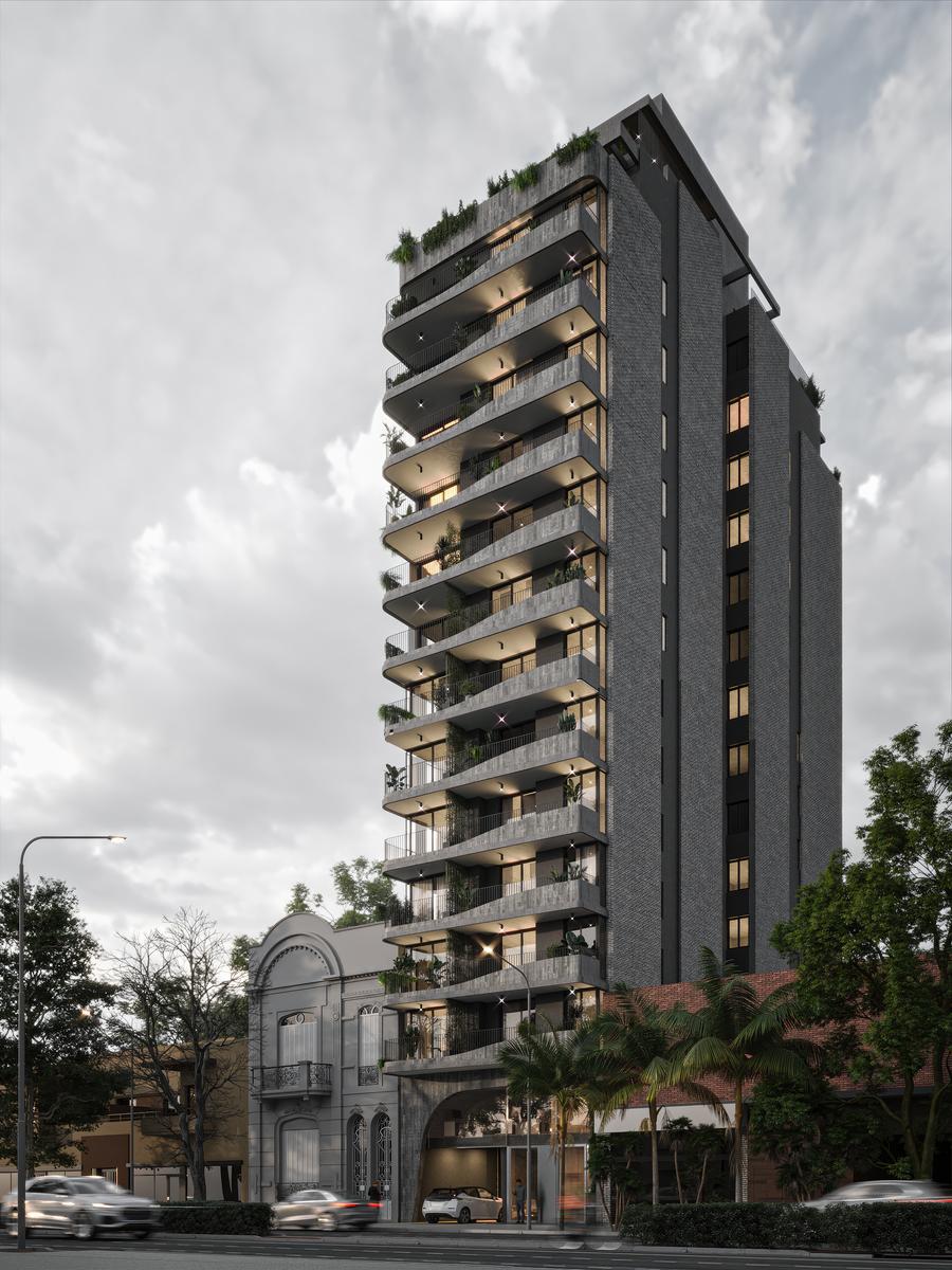 Proyecto: Se trata de una torre de 14 pisos, con departamentos de 1, 2 y 3 dormitorios. La misma posee 3 niveles de cocheras. El edificio cuenta con espacios verdes de uso común, gimnasio y bauleras. Las unidades de 3 y 4 dormitorios son de categoría premium. En la terraza del edificio, se podrá disfrutar de una piscina panorámica, un amplio solárium, un quincho semicubierto, kids zone intervenida por Crucijuegos y un living fogonero.