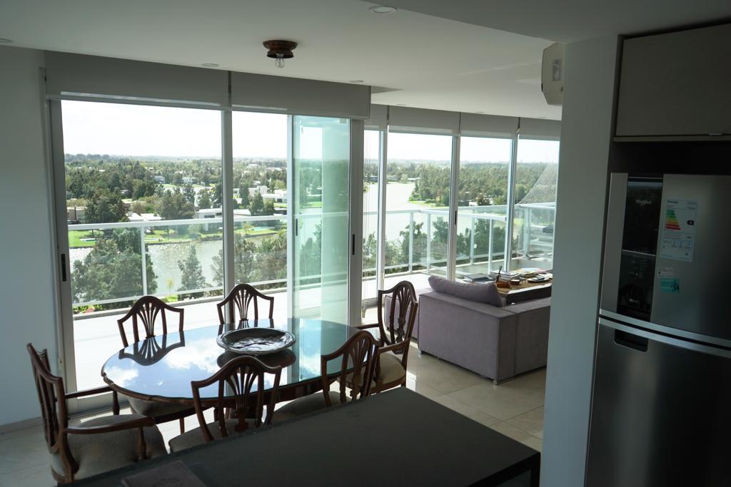 Descripción de la unidad: Torre 2 Piso 4 Unidad BSe accede al edificio por una importante recepción con ascensores modernos, el cuál nos lleva al palier que comparte con otros dos departamentos. Se ingresa por puerta de madera de dos hojas que da al hall de recepción, integrado a un amplio living y comedor en concepto totalmente abierto, con una impactante vista al lago y la arbolada del country del Lago. Salida inmediata a balcón aterrazado con parrillero propio, a través de amplios ventanales a medida, de piso a techo, con marcos de aluminio y DVH, que garantizan una optima iluminación y eficiencia, tanto térmica como sonora. Cocina semi integrada con mesada de granito, amplios mobiliario de diseño con alacenas y bajo mesada, anafe por inducción y horno eléctrico empotrado. Bacha de acero inoxidable, grifería monocomando de calidad. Lavadero independiente semi cubierto.