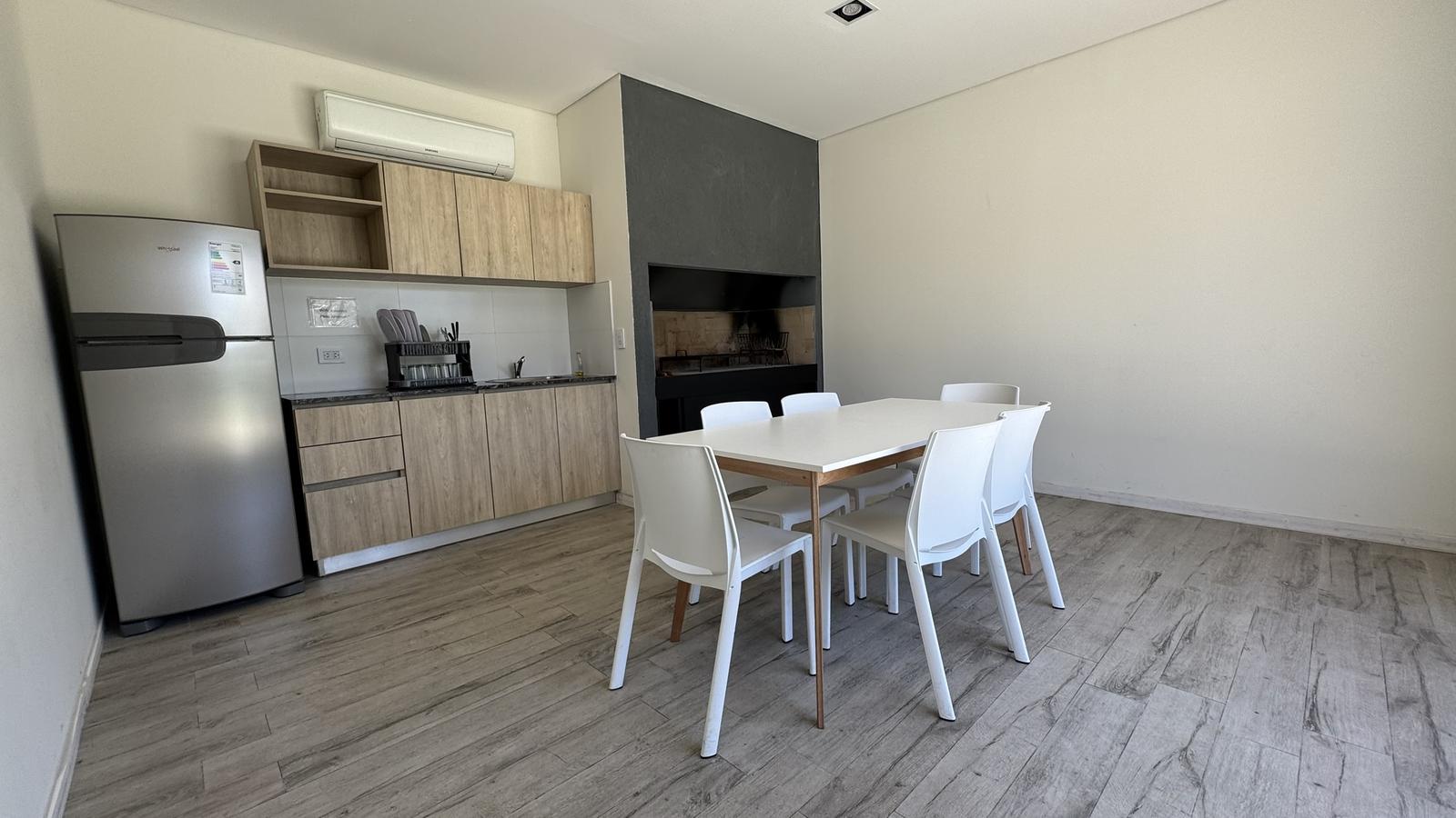 Unidad con gas.Equipada con aire acondicionado y luminarias led.Calefon y cocina con horno. Muebles de cocina de primera calidad.Pisos flotantes melaminicos en estar y dormitorio.Mesada de granito y bacha de acero inoxidable.Portero electrico con visor y cerradura electronica con huella digital.Placares con interiores completos.Aberturas con DVH.Superficie exclusiva: 51 m2.Orientacion: Suroeste.Edificio con amenities: Cuenta con 2 quinchos con parrilleros completamente amoblados, Piscina, hidromasajes, gimnasio y solarium.