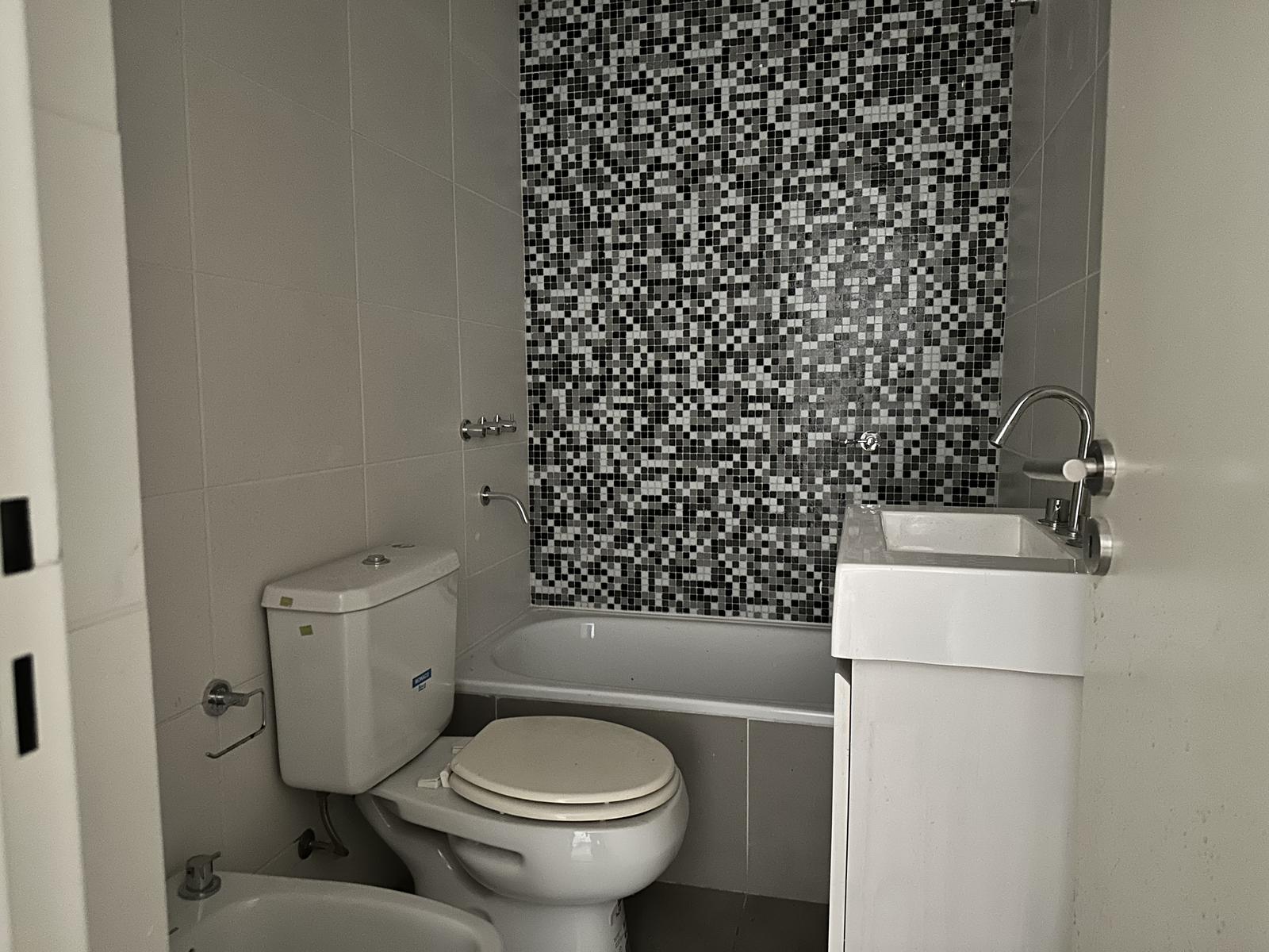 Continuando, nos encontramos con dos puertas: una que conduce hacia el frente, llevándote al dormitorio principal, y otra a la derecha que te lleva al baño. El dormitorio cuenta con un placard empotrado con interiores, como cajoneras y barral, y puertas con espejo. El baño es moderno y completo, diseñado con elegancia y funcionalidad.