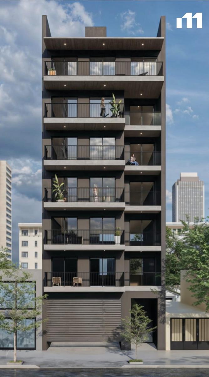 PROYECTO: Edificio residencial de diseño moderno y estilo minimalista, que utiliza materiales locales, con una estructura de 6 plantas. Consta de 16 unidades de un dormitorio, un piso exclusivo de 3 dormitorios, un consultorio/departamento en planta baja y un local comercial al frente.
