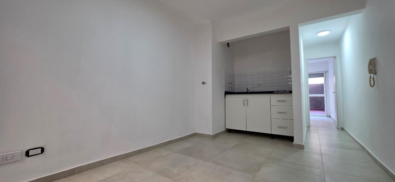 Ingreso a living comedor con cocina integrada, y patio con espacio para lavadero.