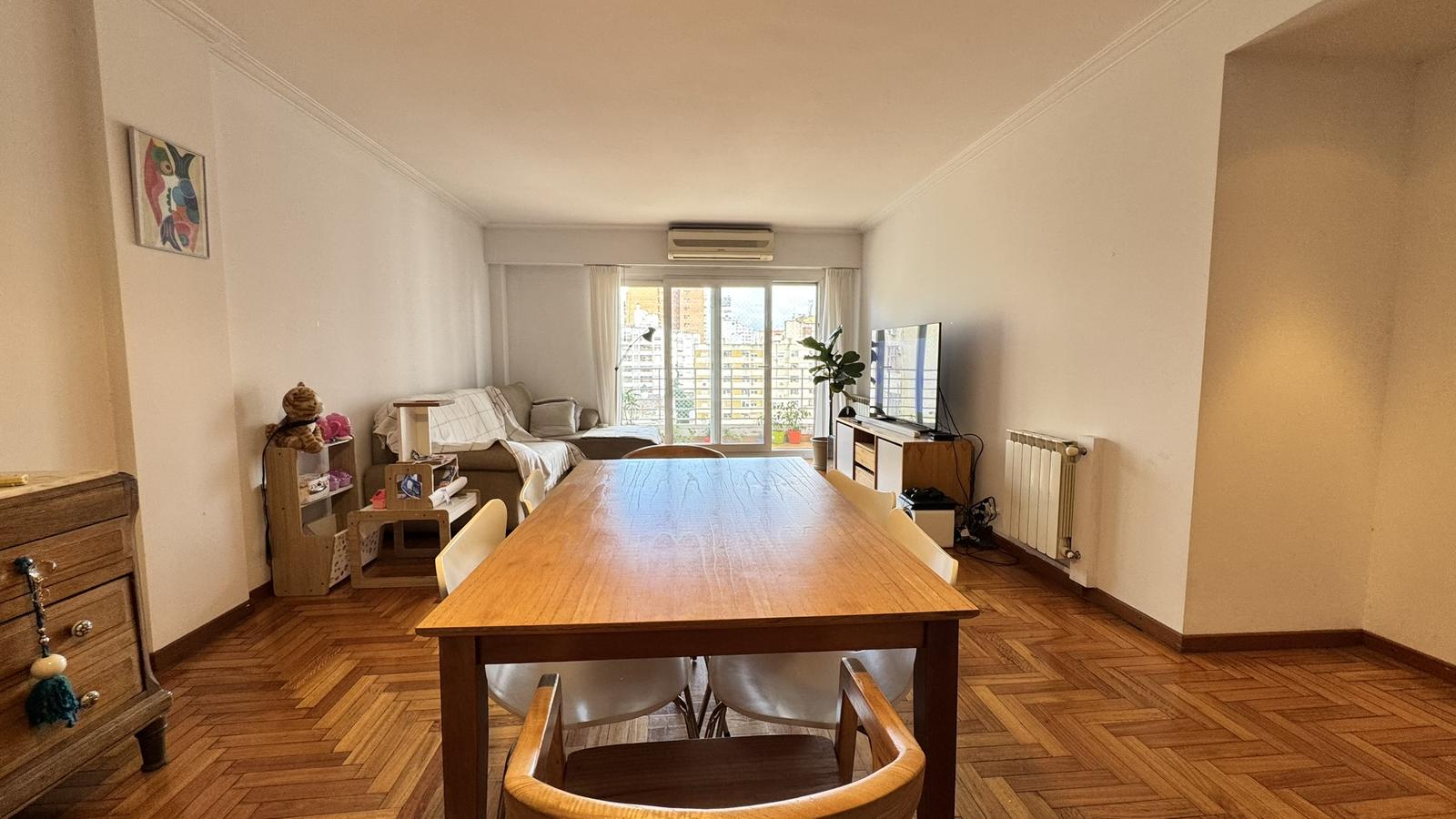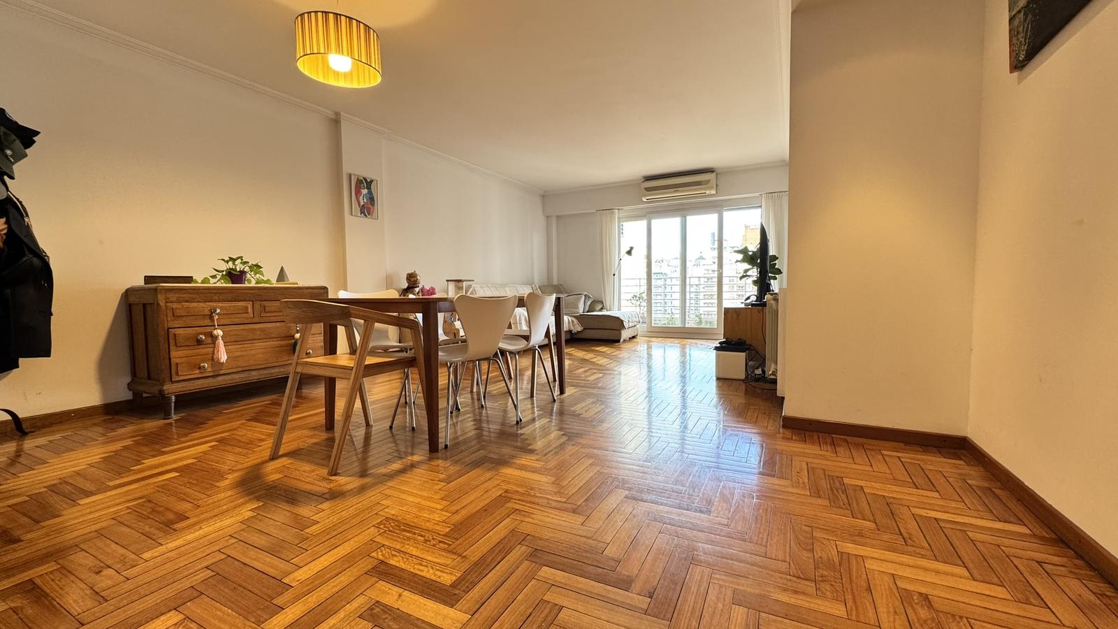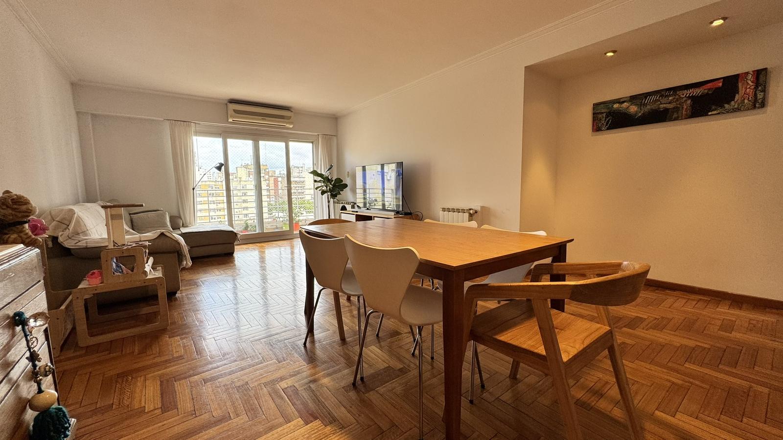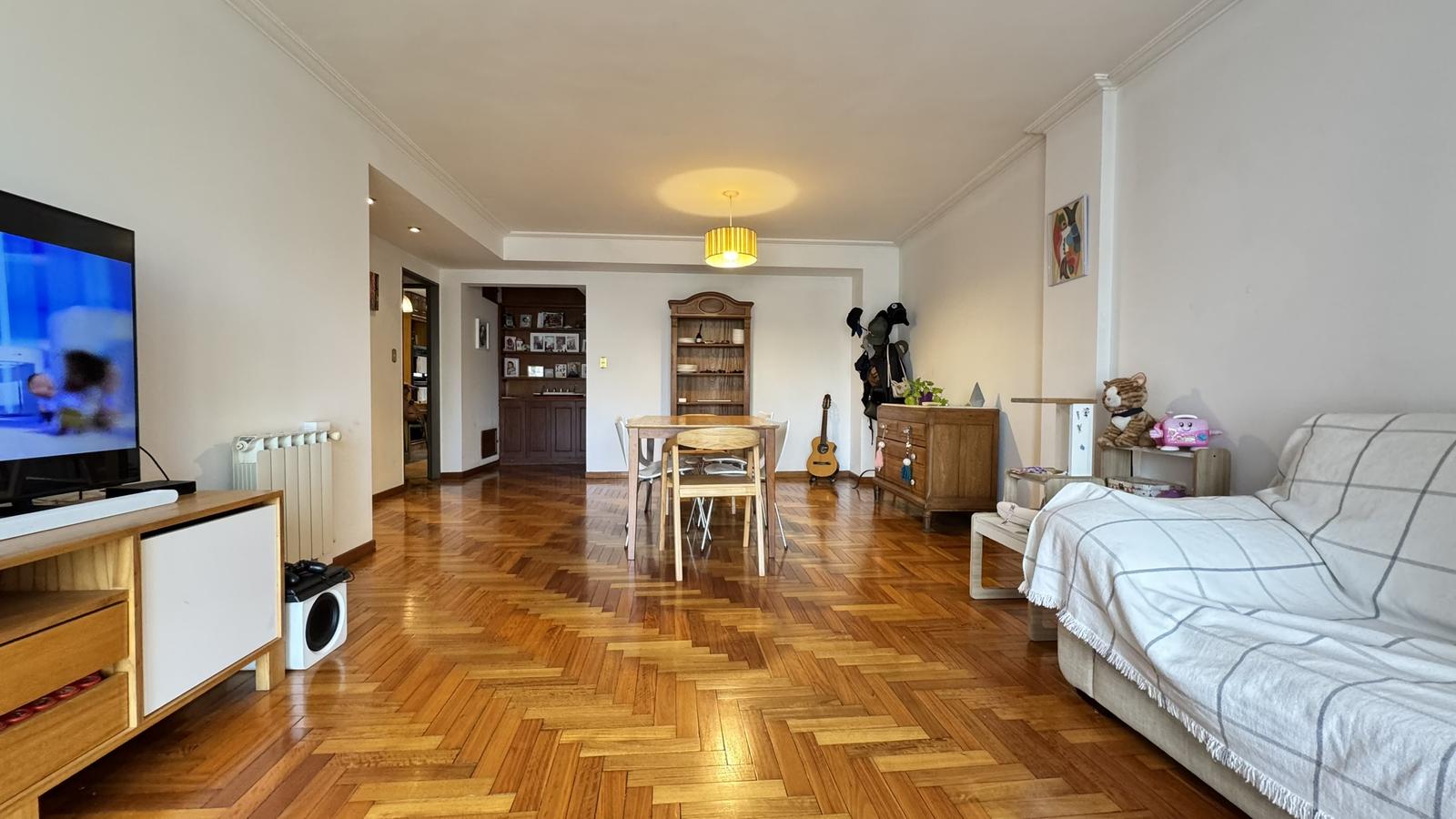 Al ingresar por la puerta principal, nos recibe un amplio living comedor con salida a balcón corrido al frente, con orientación Sur, aportando gran luminosidad y ventilación.