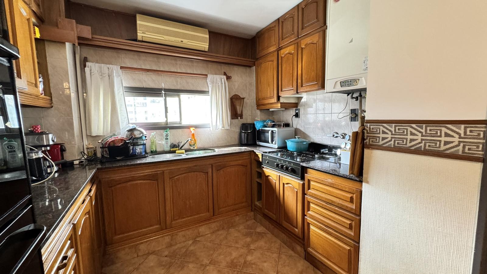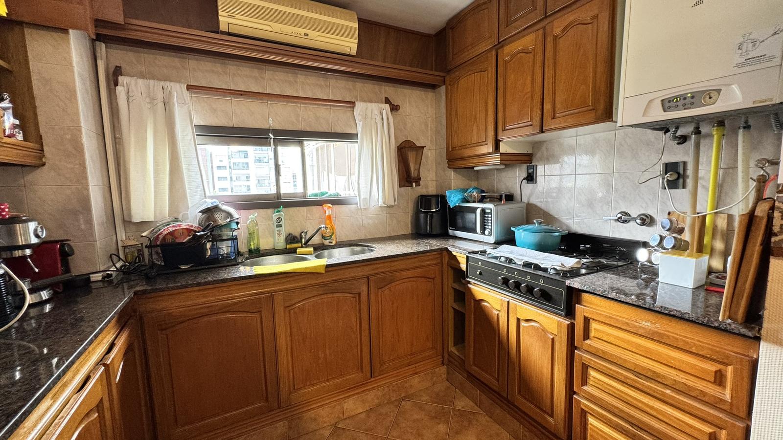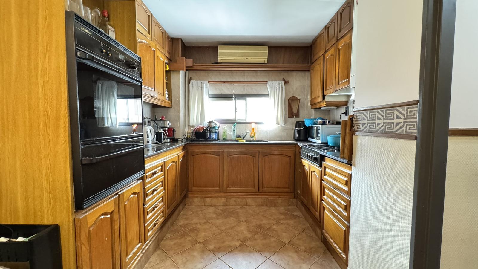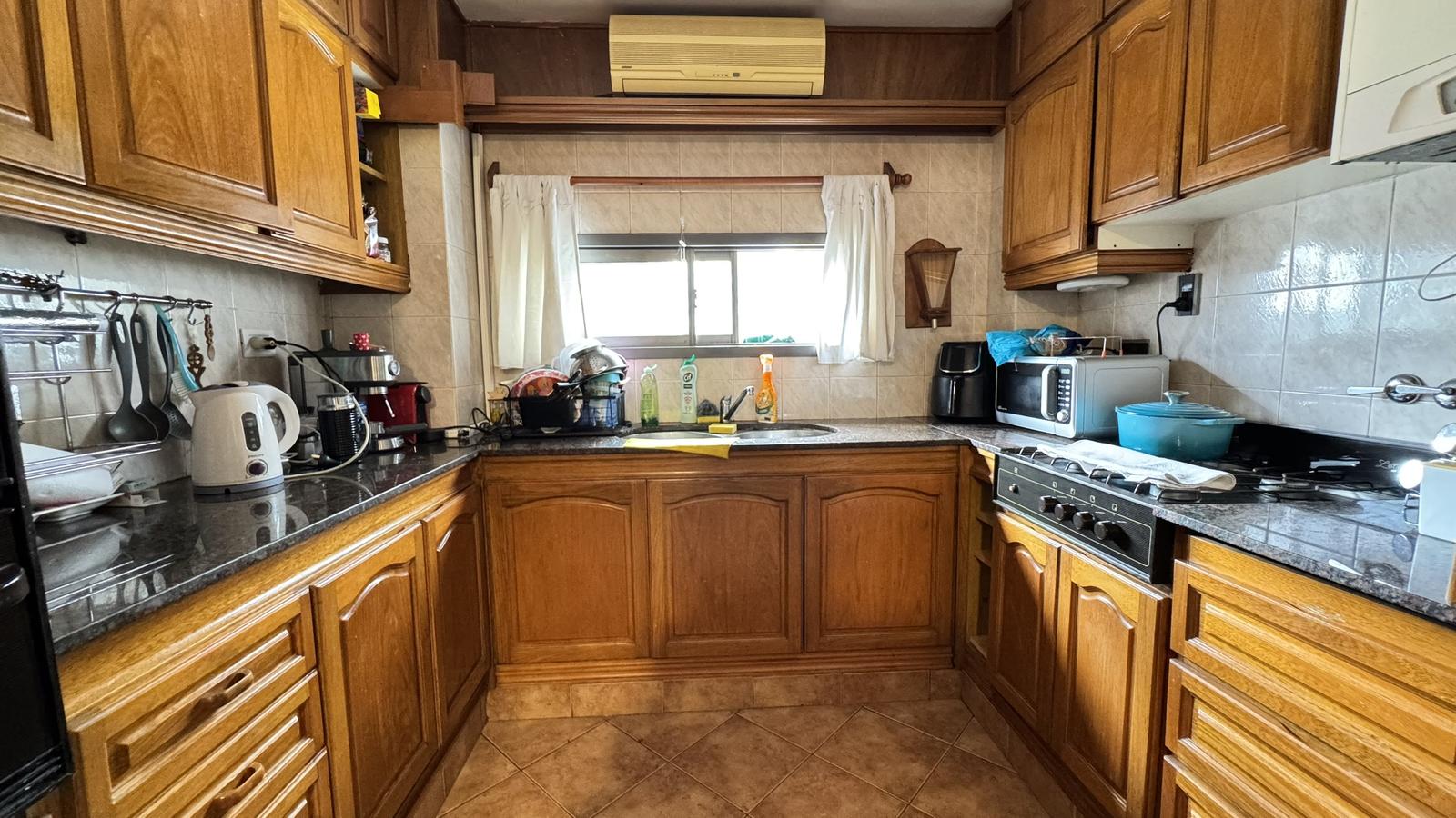 La cocina comedor es independiente, de generosas dimensiones, con acceso tanto desde el área principal como desde el ingreso secundario.Desde este último se accede a un pasillo que conecta con lavadero independiente, habitación de servicio y baño de servicio.
