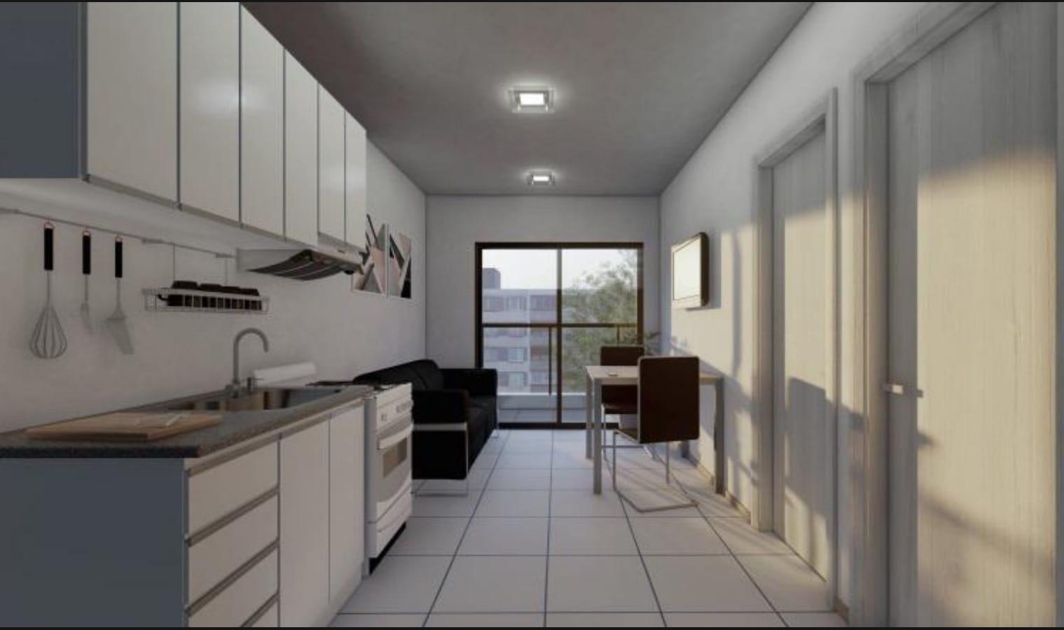 Descripción de la unidad: Ingreso al departamento por living comedor con cocina integrada completamente equipada con alacenas, bajo mesadas y espacio tecnico para lavarropas. Cuenta con 1 dormitorio con placard empotrado y un baño completo.