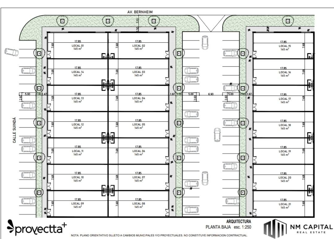Proyecto: 21 locales comerciales ubicados en una zona estratégica de Fisherton. Ingresos por Av. Bernheim y Suindá. Paseo Comercial con estacionamiento ideal para comodidad y confort.