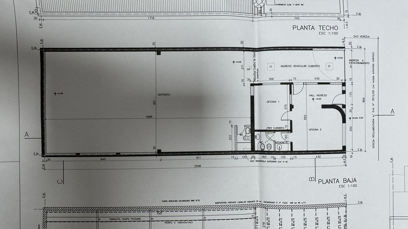 Ingreso vehicular de 2,71 mts de ancho.Cuenta con 2 oficinas bien diferenciadas con sector de cocina y baño completo.El galpon tambien cuenta con un segundo baño.Electrico.El sector de oficina cuenta con 40 m2. Hechas nuevas.Altura de techo en la parta mas alta: 4,80 mts. Parte mas baja: 3,81 mts.Altura del porton: 2,71 mts.El techo del galpón es de chapas nuevas con aislante térmico doble.Superficie cubierta total: 217 m2.Medidas del lote: 8,66 x 25,06 mts.