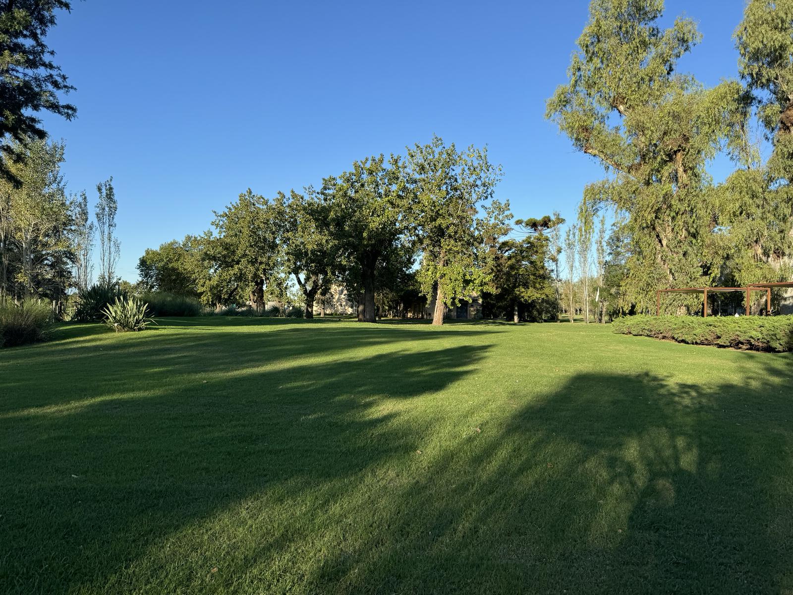 Cancha de polo reglamentaria, con tablas laterales. Posee riego artificial, asegurando un excelente estado de la cancha durante todo el año. Medidas: 265 m x 130