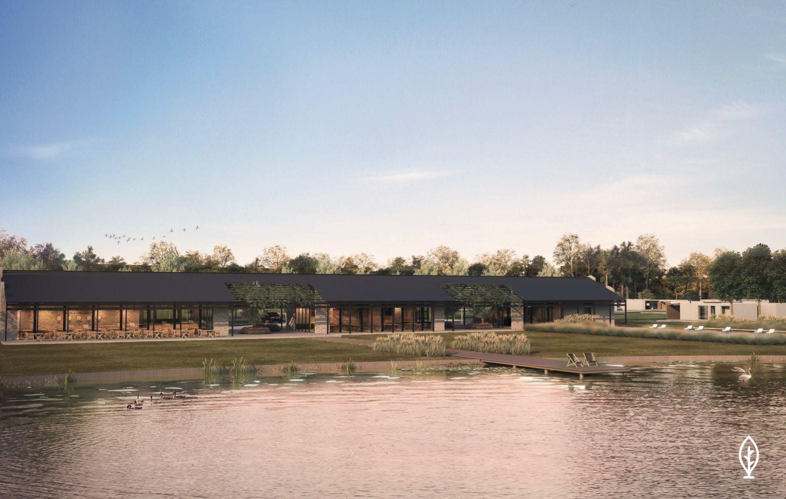 El masterplan contempla un boulevard central, espacios verdes integrados y una laguna con muelle/mirador que se convierte en el corazón del barrio.